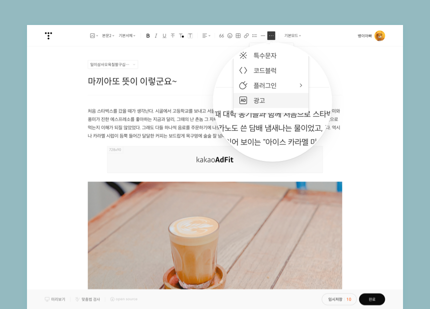 에디터에서도 광고를 추가할 수 있습니다.
