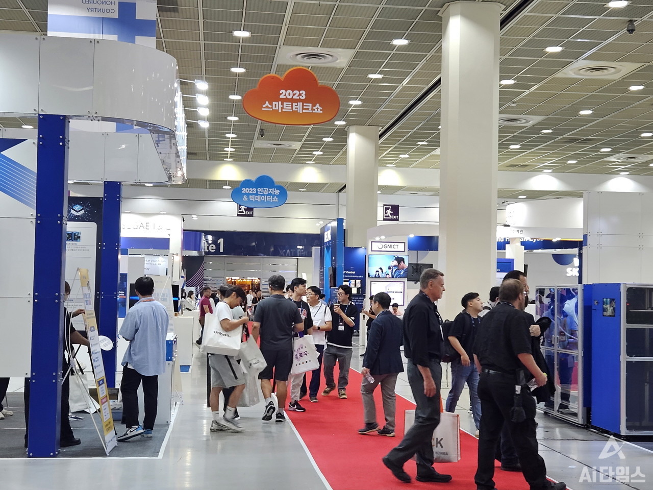 국내 AI와 데이터 산업을 한눈에 살펴볼 수 있는 '2023 인공지능과 빅데이터 쇼' 그리고 미래 선도기술 전시회인 ‘제12회 스마트테크 코리아(SMART TECH KOREA 2023)’가 28일부터 사흘 동안 서울 코엑스에서 열렸습니다.
