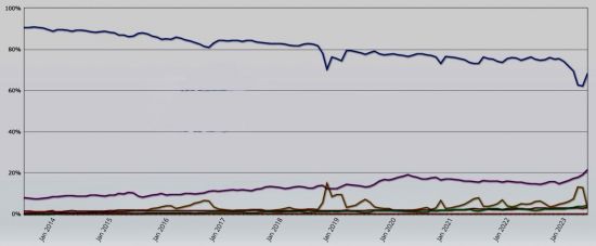10년 전 미국 내 맥OS의 점유율이 12.86%에 불과했던 것을 고려하면 상당한 변화다. 컴퓨터 전문 매체 컴퓨터월드는 맥 컴퓨터 상승세는 애플 실리콘 등장 이후 더욱 본격화됐다고 파악했다.