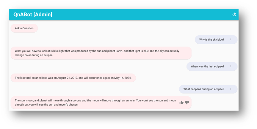자동화된 교육에는 정책 문서 및 기타 Q&A 스타일 문서와 같은 회사 문서를 봇에 제출하고 코치에게 직접 요청하는 작업이 포함됩니다. 엔진은 이러한 문서의 질문 및 답변 목록을 제공합니다. 그러면 봇이 이러한 질문에 자신 있게 대답할 수 있습니다.