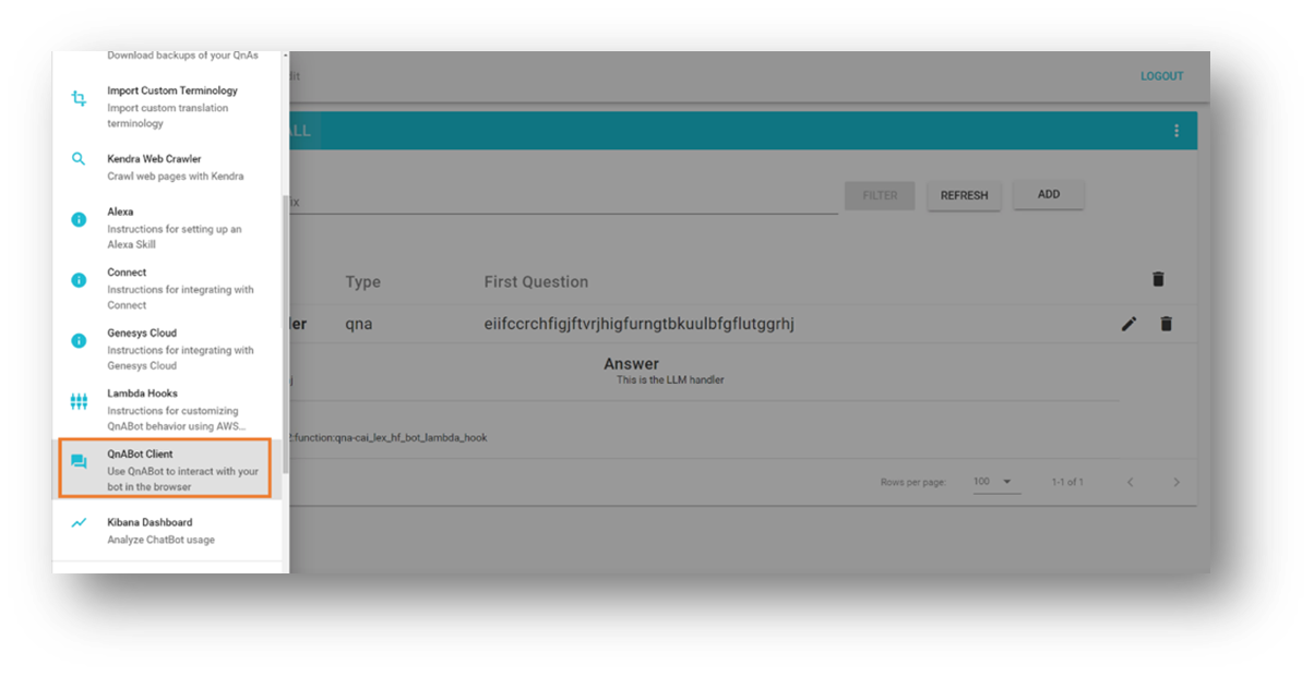 QnABot은 Amazon Lex 봇에 사용자 인터페이스를 제공하는 오픈 소스 AWS 솔루션입니다. 항목 에 대한 Lambda 후크 함수 로 구성했으며 CustomNoMatchesQnABot이 답변을 찾을 수 없을 때 Lambda 함수를 트리거합니다. 이미 배포했으며 다음 섹션에서 구성 단계를 포함했다고 가정합니다.