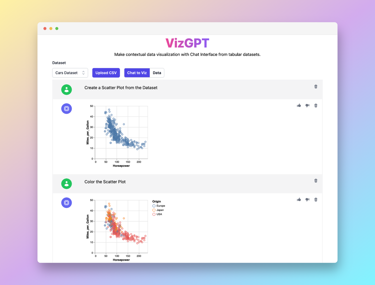빠르게 차트/데이터 시각화를 생성해야 할 때는 VizGPT(opens in a new tab)를 사용해보세요. ChatGPT 프롬프트를 사용하여 코드 없이 어떤 유형의 차트도 만들 수 있습니다!