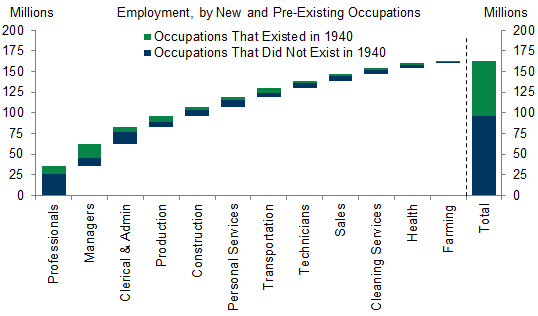 여러분은 현재 어떤 직업에 종사하고 계신가요? 골드만삭스의 연구에 따르면 오늘날 근로자의 60%가 1940년에는 존재하지 않았던 직업에 종사하고 있으며, 지난 80년 동안 증가된 일자리의 85% 이상이 기술의 혁신으로부터 이어졌다고 설명하고 있습니다. 지금으로부터 80년 전에는 소프트웨어 개발자도, 디지털 마케터도 존재하지 않았고 웹 퍼블리셔나 UI/UX 디자이너도 없었을 테니 현대 사회의 직장인이 종사하는 직무의 상당수는 기술 덕분에 탄생했다고 볼 수 있겠습니다.