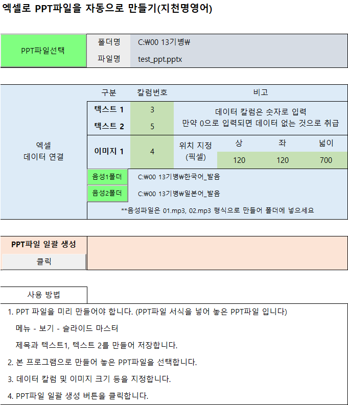 '작업할 PPT 파일 및 폴더 정보