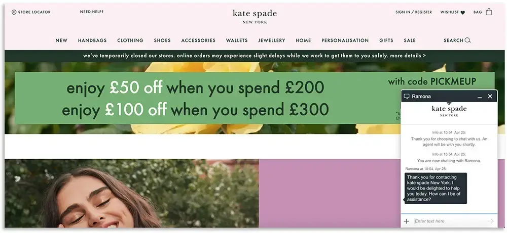 패션 소매업체인 Kate Spade는 챗봇을 사용하여 고객 질문에 답변합니다.