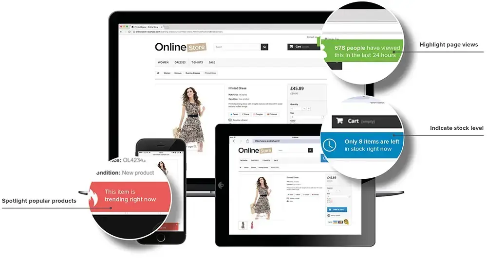 사회적 증거는 구매 시 가장 중요한 요소 중 하나입니다. 따라서 예를 들어 별점이나 사용 후기를 통해 다른 고객으로부터 검증된 리뷰를 제공하는 것은 사회적 증거가 쇼핑객에게 제공하는 보안을 만드는 좋은 방법입니다.