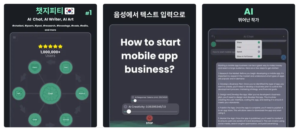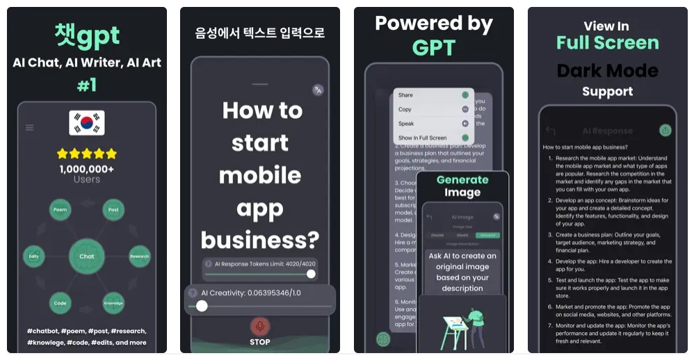 또 사용자들은 모바일에서의 대화를 웹으로 이어가는 등 다양한 기기에서 저장된 대화 기록을 연동해 사용할 수 있다. 월 20달러의 ‘챗GPT 플러스’에 가입한 유료사용자들은 앱에서 GPT-4에 대한 접근 권한을 포함한 추가 혜택을 누릴 수 있다.