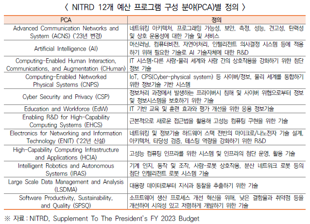 □ (ICT R&D 예산) NITRD를 통해 ICT(총12개)에 대한 예산 추적 체계 확립