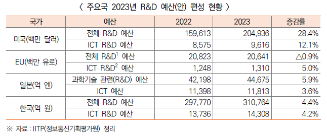 주요국 2023 ICT R&D 예산 분석