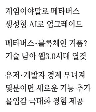 과연 메타버스·블록체인 기술은 거품이고 이대로 사라질 것인가. 이와 관련해 테크 업계에는 여전히 '거품은 꺼질지언정 기술은 남는다'고 믿는 이들이 존재한다. 탈중앙화를 기치로 내세운 미래의 웹(웹3.0)이 AI 기술 발전으로 더 빨리 실현될 수 있다는 것. 특히 '킬러 서비스'가 없다는 지적을 받아온 메타버스, 블록체인 기술이 AI와 만나 제대로 꽃필 수 있다는 낙관론도 있다.