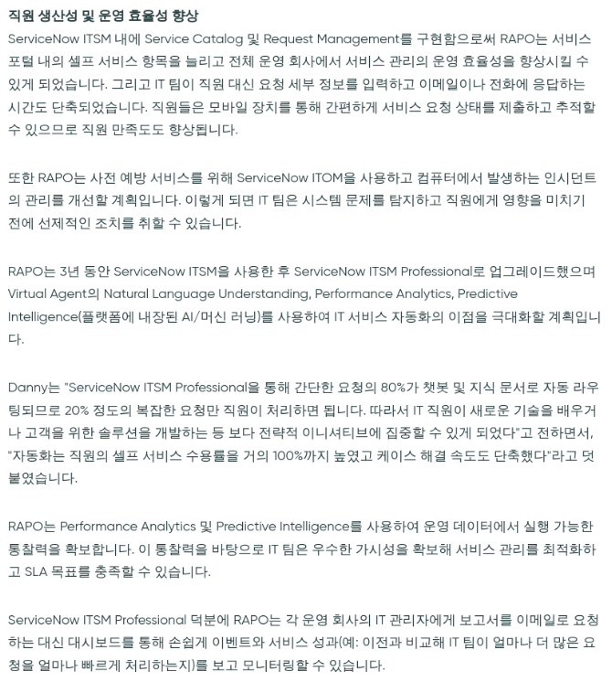 ServiceNow를 통해 복잡한 운영을 단순화하여 시장 민첩성을 향상하고 고객의 기대를 뛰어넘으며, 비용을 절감할 뿐만 아니라 수익을 창출할 수 있습니다.