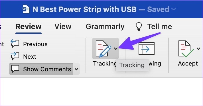 1 단계: Word 문서를 열고 검토 탭에서 추적을 선택합니다(위 단계 참조).