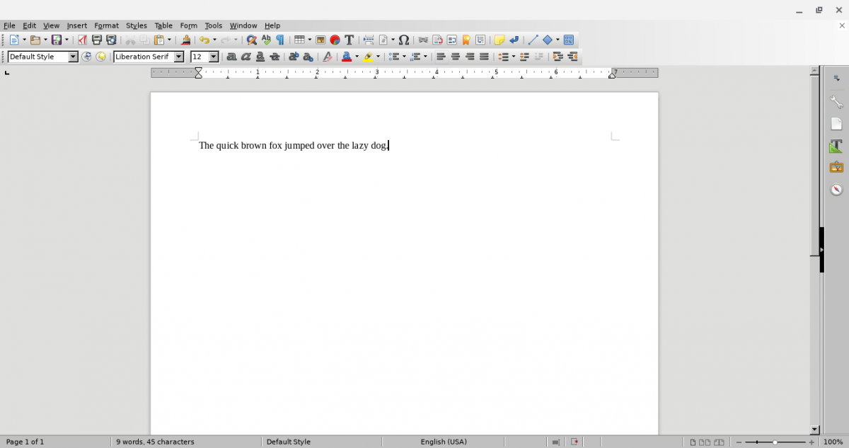 그런 다음 다른 시스템에서처럼 문서를 작성할 수 있습니다. 저장할 때 표준 OpenOffice 형식(ODT)이 아닌 Microsoft Word 문서(DOCX)로 저장하는 것을 잊지 마십시오.