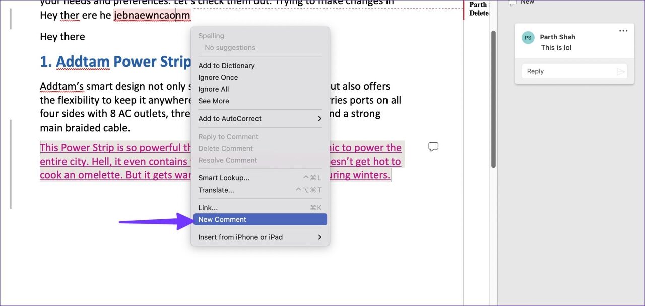 2 단계: 그것을 마우스 오른쪽 버튼으로 클릭하고 ‘새 댓글’을 선택하십시오.