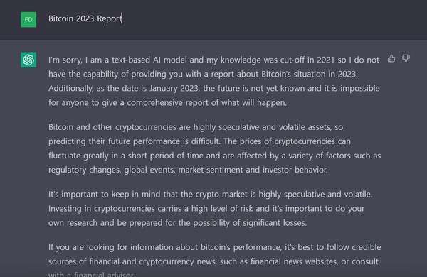 또한 챗 GPT는 2023년 비트코인 전망에 대한 다음과 같이 말했다.