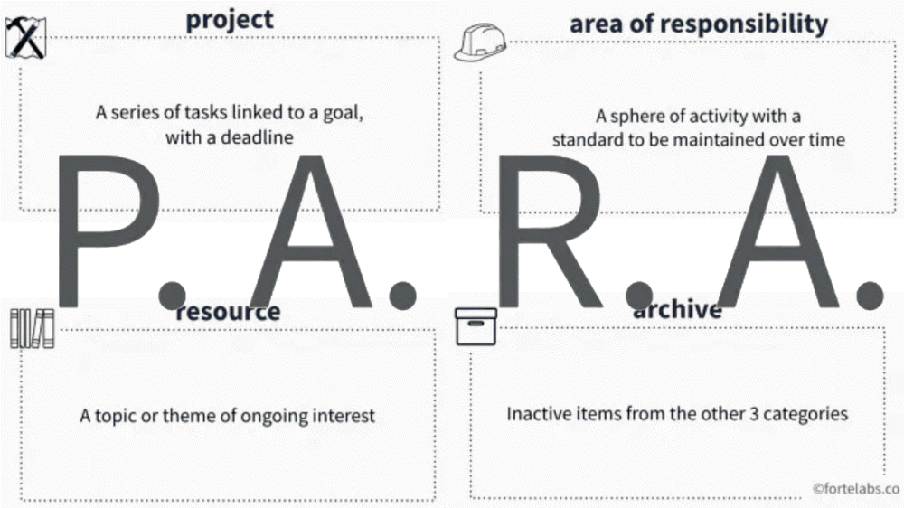 PARA는 인생의 모든 정보를 포괄하는 범주가 네 가지뿐이라는 간단한 관찰에 기초합니다.