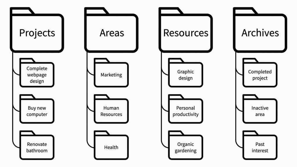 정보를 구성하는 더 복잡하고, 정교하고, 전문적인 다른 방법도 있지만, 걸리는 시간보다 더 많은 시간을 제공하기 때문에 시간의 시험을 견디는 유일한 방법은 PARA입니다.