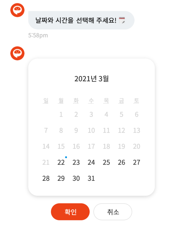 캘린더에서 희망하는 날짜를 선택하여 예약 및 접수를 실시간으로 반영할 수 있습니다.