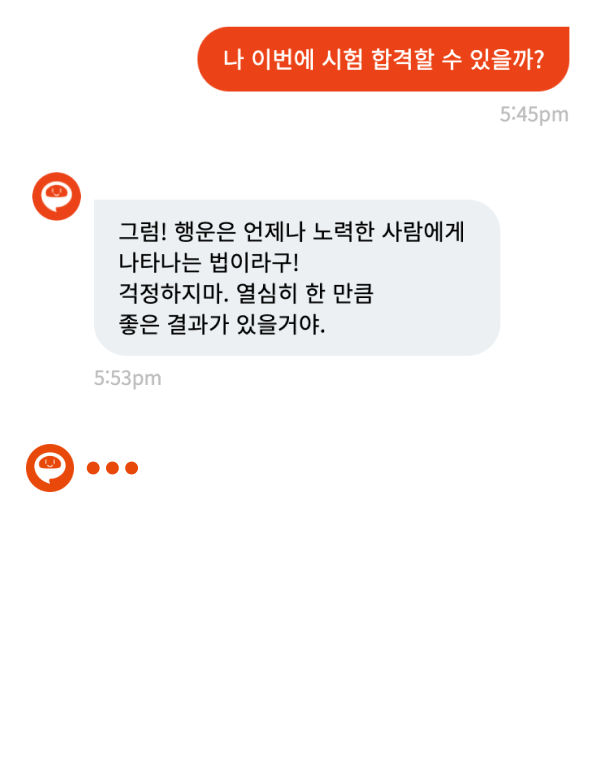 챗봇이 생각하고 답변하는 것처럼 타이핑 하는 효과를 주는 기능으로 콘텐츠 챗봇에 활용할 수 있습니다.