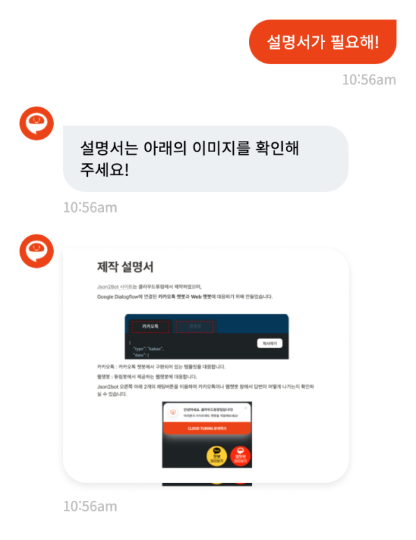 이미지+텍스트+이미지 버튼 형태로 케로셀(슬라이드) 답변을 제공합니다.