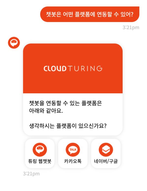 클라우드튜링 챗봇 빌더 하나에서 연결된 여러 플랫폼의 고객을 만나보세요.