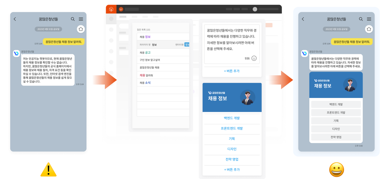 다양하게 제공하는 답변 아이템으로 서비스에 맞는 챗봇 시나리오를 완성해보세요.