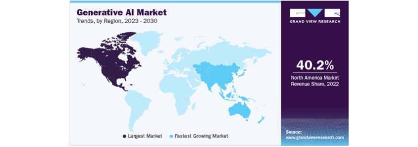 생성형 AI, 최대 시장은 북미, 최고 성장률은 아태지역