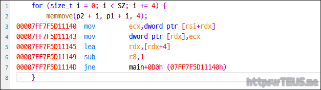 memmove() 행은 코드를 아예 생성하지도 않는다.