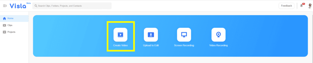 2. 홈페이지 상단부 Create Video 클릭