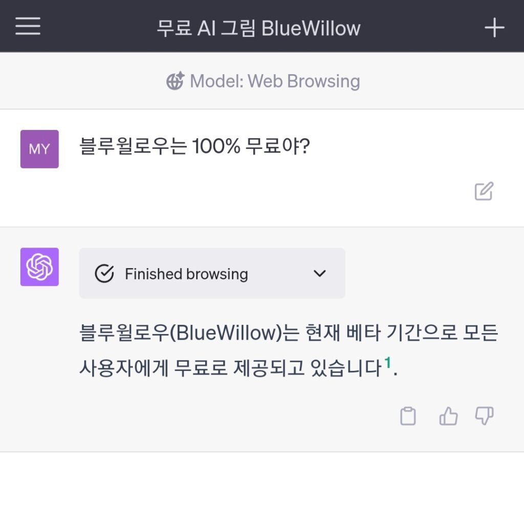 [챗GPT 브라우징] 블루윌로우는 완전 무료야?