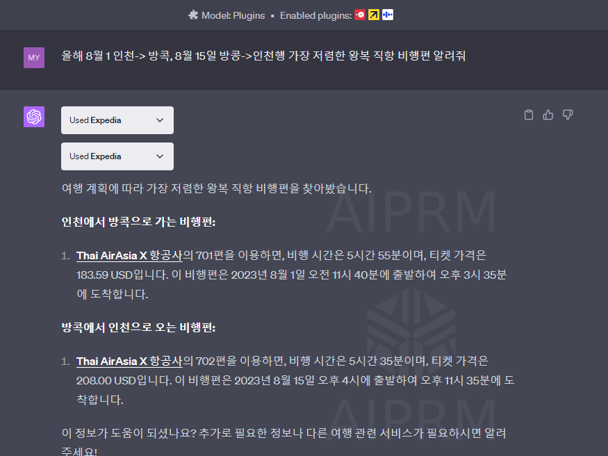 앞으로 더욱 다양한 챗GPT 플러그인을 사용해 본 후 후기에 대해 포스팅할 예정이니 많은 관심 부탁드립니다.