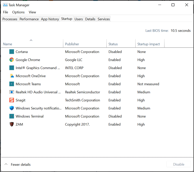 이것이 PC 속도를 늦추는 주요 원인 중 하나입니다. 앱은 부팅 프로세스를 느리게 하는 경향이 있습니다. 따라서 불필요한 앱을 모두 비활성화하면 성능이 향상됩니다.