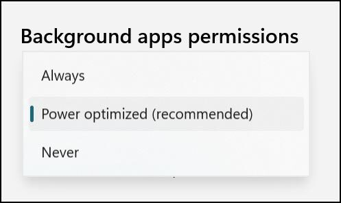6. 드롭다운 메뉴에서 응용 프로그램에 제공하려는 기본 백그라운드 권한을 선택합니다.