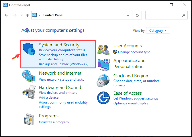 - 왼쪽 창에서 시스템을 선택하고 오른쪽 창에서 복구를 클릭합니다.