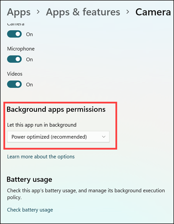 5. 아래로 스크롤하면 백그라운드 앱 권한 섹션이 표시됩니다.