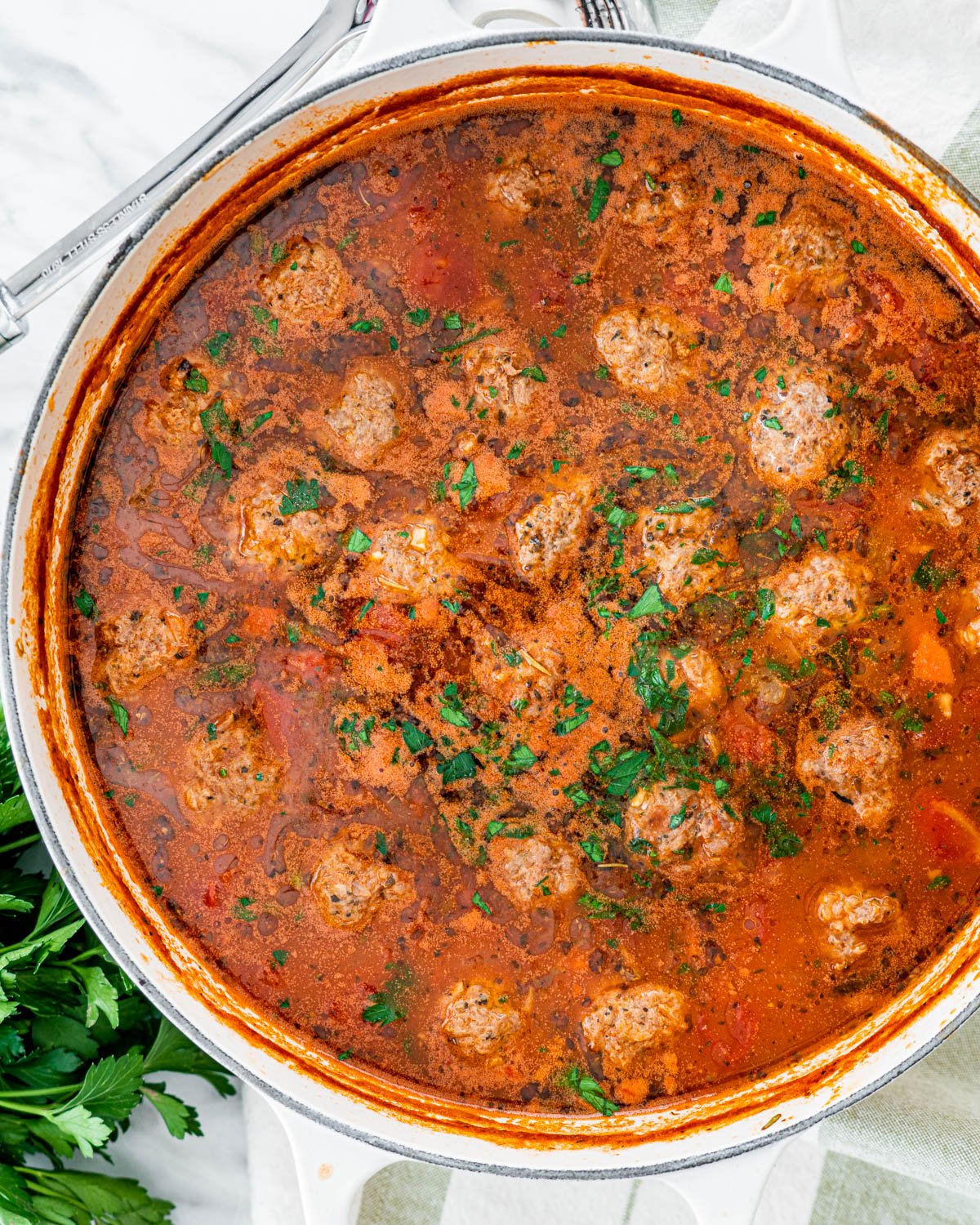 당신은 이 이탈리아식 미트볼 수프를 좋아하게 될 것입니다 . 쉽고 맛있고 부드러운 수제 쇠고기 미트볼과 야채가 듬뿍 들어있어 모든 식욕을 만족시키는 빠르고 풍성한 식사입니다!