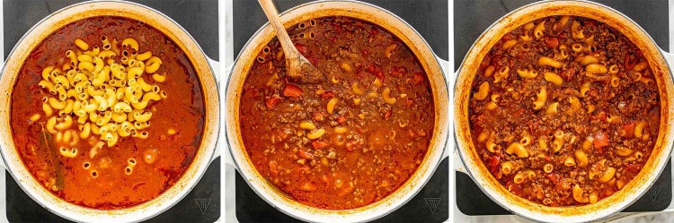 마카로니를 추가하고 뚜껑을 덮고 가끔씩 저어주며 12~15분 동안 또는 국수가 부드러워질 때까지 요리합니다.