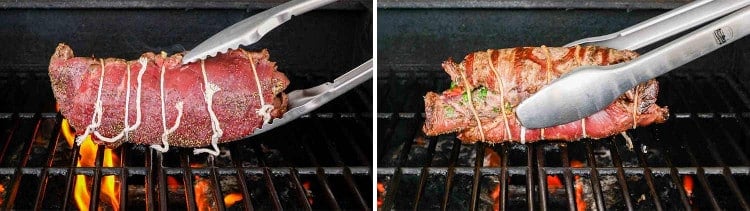 중간 정도의 직접적인 열로 요리할 수 있도록 그릴을 준비하세요. 그릴 온도는 약 400°F(204°C) 여야 합니다 . 롤을 그릴 위에 놓고 양면을 한 면당 약 4~5분 , 총 약 20분 동안 굽습니다. 롤 중앙에 삽입된 고기 온도계는 130°F(54°C)를 나타내야 합니다 . 롤을 자르기 전에 15분 동안 그대로 두세요.