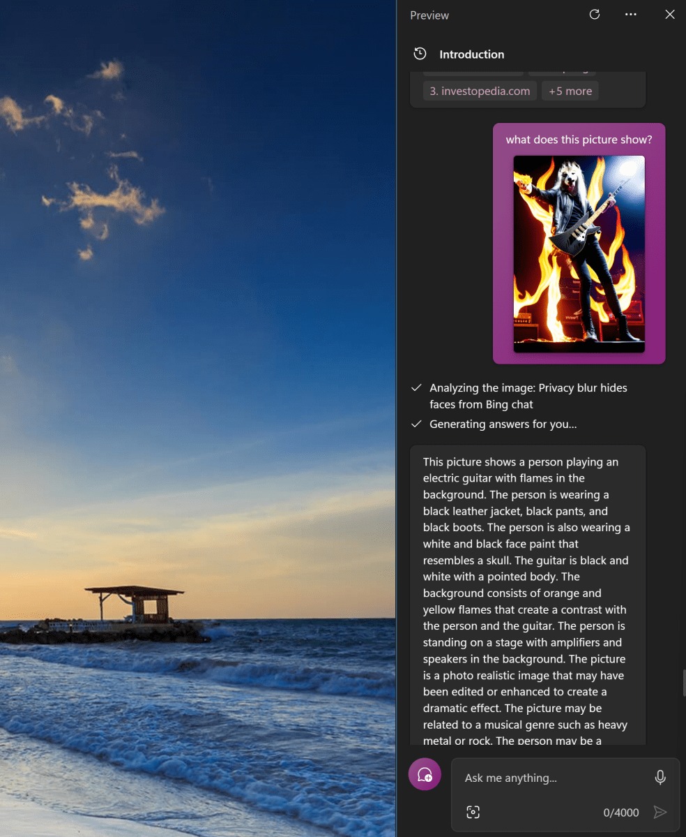 “나는 40세이고 은행에 85,000달러가 있다. 은퇴 자금을 극대화하려면 어떻게 해야 할까?”라고 묻는다면 코파일럿은 웹을 검색하고 이런 수치를 AARP 은퇴 계산기에 입력한 후 전략을 제안할 것이다. 이 모든 것이 웹 페이지를 열지 않고 가능하다. 코파일럿이 항상 객관적으로 옳은 것은 아니지만, 각주와 링크를 통해 출처를 인용할 것이다. 또한 코파일럿은 사진 또는 이미지를 입력하면 이에 관한 질문에도 답한다. 이미지를 그려달라고 요청할 수도 있다. ⓒ Foundry 코파일럿은 느린 것이 약점이다. 질문에 응답하는 데 몇 초가 소요될 수 있다. 이상한 이모티콘 외에도 특징이 없고 개성이 부족하다. 개인정보 보호 등 관련 정책에 따라 답변을 거부할 수도 있다. 대화는 단 30개의 응답으로 끝난다. 그리고 그 답변이 옳다고 100% 확신할 수도 없다.
