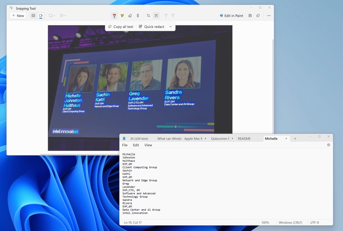 자동화된 텍스트 추출 및 편집 기능도 제공한다. 스크린샷을 촬영하고 작은 텍스트 추출 버튼을 클릭하면 윈도우가 OCR을 사용하여 이미지에서 텍스트를 자동으로 복사한다. 필자의 테스트에서는 매우 잘 작동했다. 판매 회의 또는 학회에서 촬영한 사진에서 텍스트를 신속하게 기록하고 싶을 때 캡처 도구를 사용할 수 있다. ⓒ Foundry 또한 캡처 도구는 공유하고 싶어 하지 않는 텍스트를 인식한다. 이 또한 인상적이다. 광범위하게 테스트하지는 않았지만 보고서 작성을 위한 출장 비용 파일을 보관할 때 개인정보를 삭제했다.