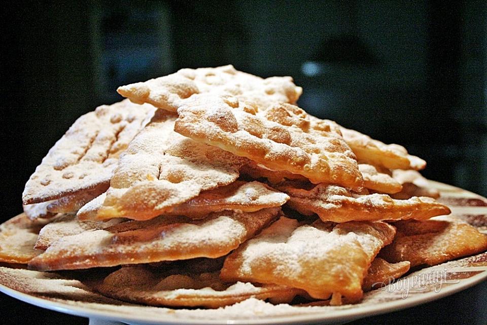 썰어놓은 신의 은혜를 쟁반에 담고 수건으로 덮어 15분 이상 휴지시켜주세요. 그런 다음 라드를 데우고 라드가 없으면 기름을 데웁니다. 그러나 연고가 가장 좋습니다. 반죽 조각의 양면이 황금빛 갈색이 될 때까지 튀기고 여분의 지방을 주방 종이 타월로 말리고 전체를 설탕으로 덮거나 가루 설탕을 뿌립니다.