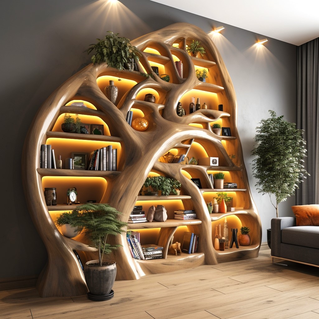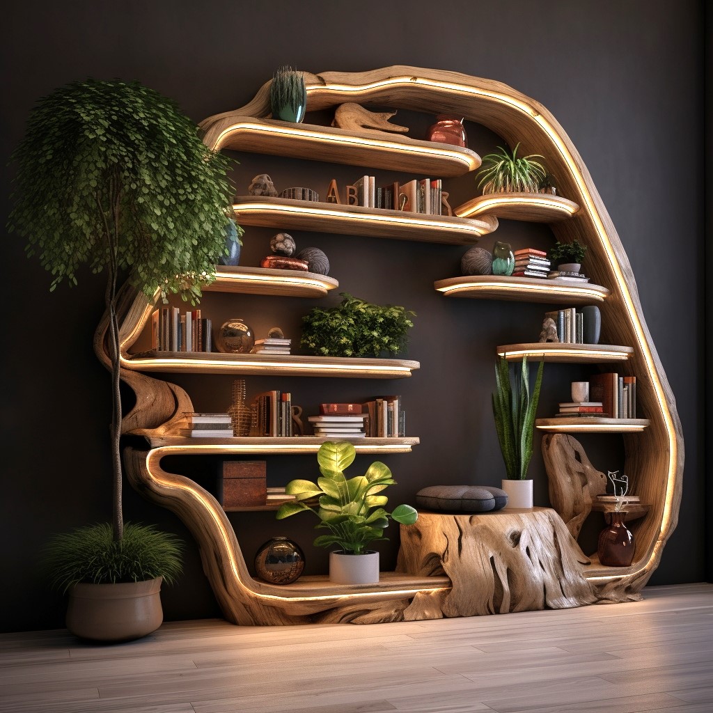 통나무를 인테리어 디자인에 접목시키면서 나무 모양의 벽책장, 침대 책장, 소파 책장 등 매력적인 트렌드가 탄생했습니다. 이 혁신적인 가구는 실용적인 수납 목적을 제공할 뿐만 아니라 생활 공간에 자연미를 더해줍니다. 벽책장 형태로 나무의 매혹적인 존재감을 집에 가져오는 것을 상상해 보세요. 나무의 가지 구조를 모방하도록 배열된 통나무로 제작된 이 독특한 가구는 기능적이고 시각적으로 놀라운 초점 역할을 합니다. 각 통나무는 선반 역할을 하여 책, 장식품, 심지어 화분까지 전시할 수 있는 플랫폼을 제공합니다.