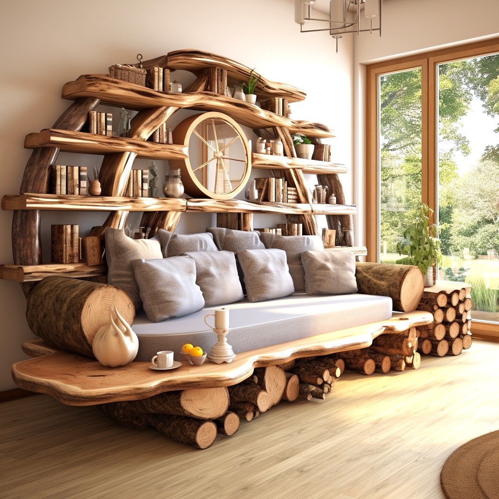목재 통나무 책장 가구로 아늑한 코너 만들기