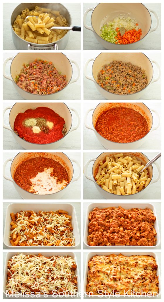- 필요한 주방 도구: 6쿼트 더치 오븐 또는 대형 냄비, 파스타 조리기, 날카로운 칼 및 도마, 계량 컵 및 스푼, 치즈 강판, 대형 스푼 및 13×9인치 베이킹 접시.