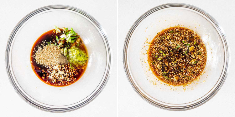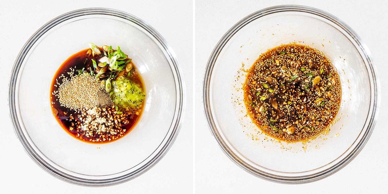 매리네이드 만들기: 중간 크기의 그릇에 모든 매리네이드 재료를 함께 섞습니다.