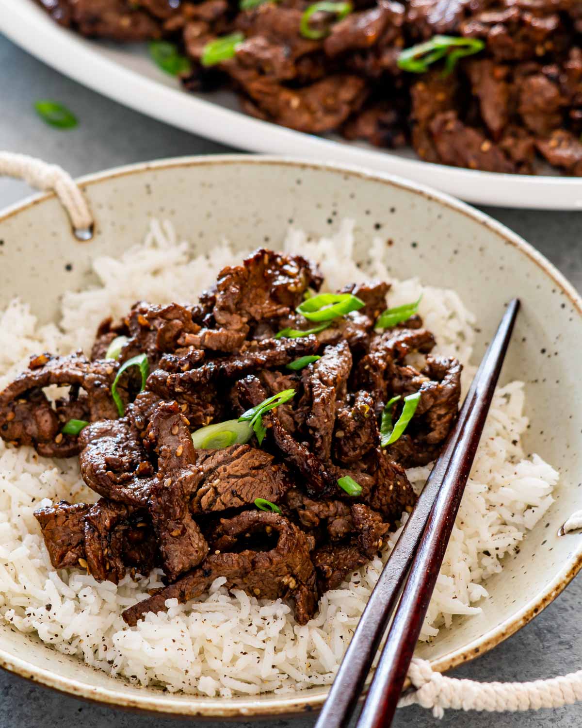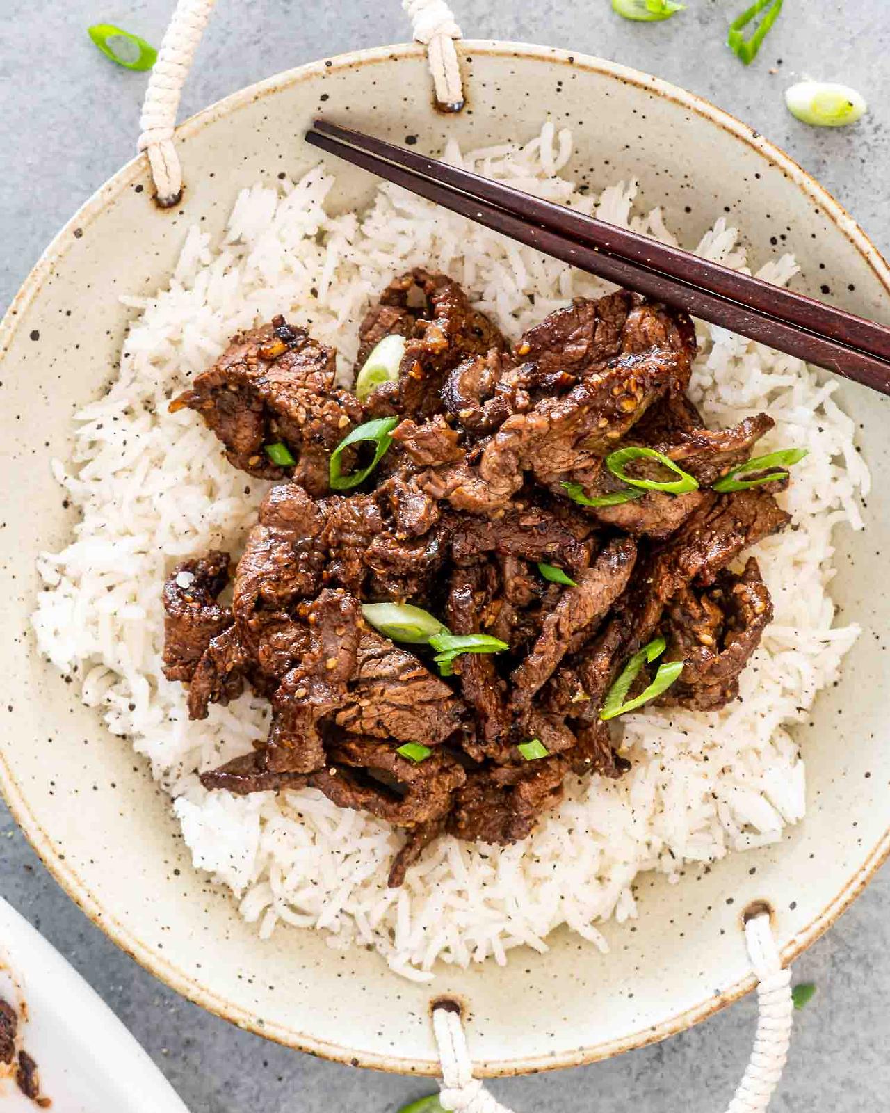 집에서도 쉽게 만들 수 있는 한우 불고기 . 풍미 가득한 매리네이드로 만든 이 옆구리 스테이크는 신속하게 완벽하게 조리되어 가장 부드러운 쇠고기를 만들어 집에서 바로 테이크아웃 스타일로 매우 쉽게 요리할 수 있습니다!