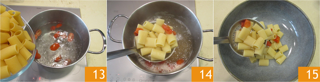13, 물을 빼다 14그리고 서빙 접시에 담으세요.